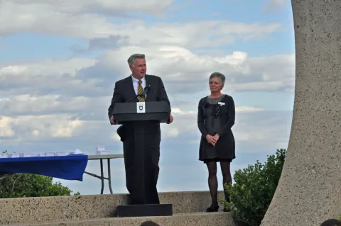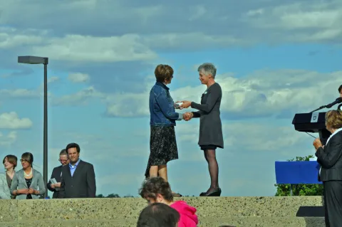 Guest await the arrival of the first Fiat Lux Ring recipients on Aperture Hill on May 30.