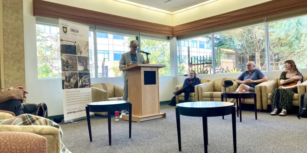 The Department of English at the University of Lethbridge is proud to be the host of a regular Open Mic that fosters the love of literature and live creative work.