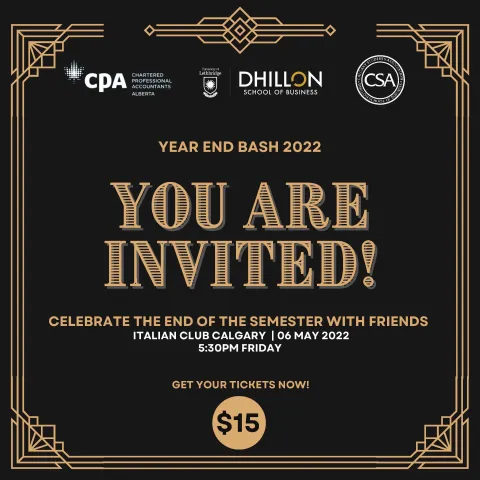 Calgary Students Association - Dhillon School of Business (CSA-DSB) hosts their annual Year End Bash!