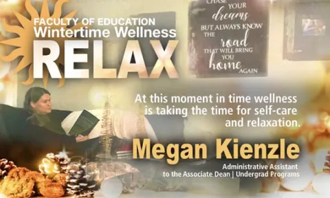 We hope you are all doing well! 2020 has been a difficult year for many people. The pandemic has presented many challenges, but as a community we have come together to support each other through these trying times. The Faculty of Education has placed great emphasis on the health and well-being of its members, and this was exemplified through the Faculty Wellness Challenge in the Fall Term 2020. Every week, numerous students, staff, and faculty tweeted out pictures of themselves engaging in diverse wellness activities, ranging from walking their dog to engaging in exercise, spending time with family to reading a good book. The tweets served as a reminder of the importance of taking care of ourselves in order to be able to serve others in our capacity as educators, but they also demonstrated the strength we have as a community. Although we may be physically isolated, we are never alone, as there is a large professional community to support us. As we enter into the holiday season, we are mindful of the importance of continuing to foster community and promote wintertime wellness. As a result, we will be posting community voices of wellness throughout the holiday season and into the new year. We hope the wellness messages will inspire you to prioritize your well-being during the holidays.