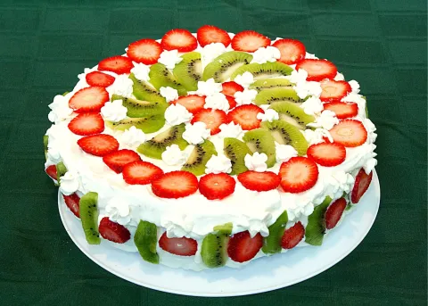 - Garnish with preserved strawberries or other fruits: grapes (cut in half), kiwis (sliced), mandarin oranges (from a can works) and blueberries. Bananas can work also but they go brown after a while.