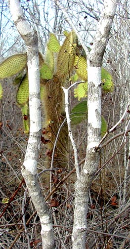 During the dry season this tree stands gaunt and leafless with pale grey bark.