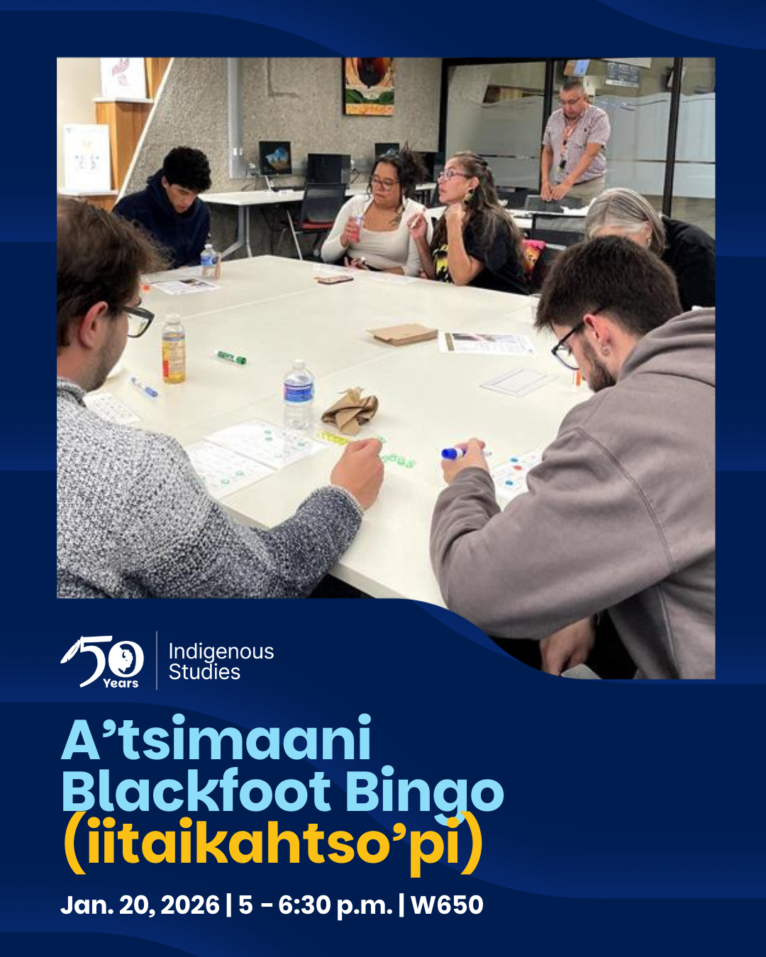Join us for an evening of language, laughter, and learning at Blackfoot Bingo with fluent speaker Julius Delaney. This interactive session is a fun and welcoming way to hear Blackfoot spoken in a relaxed, community-based setting — whether you’re learning, listening, or reconnecting with the language. Come spend time together, play bingo, and support Blackfoot language revitalization in a good way.