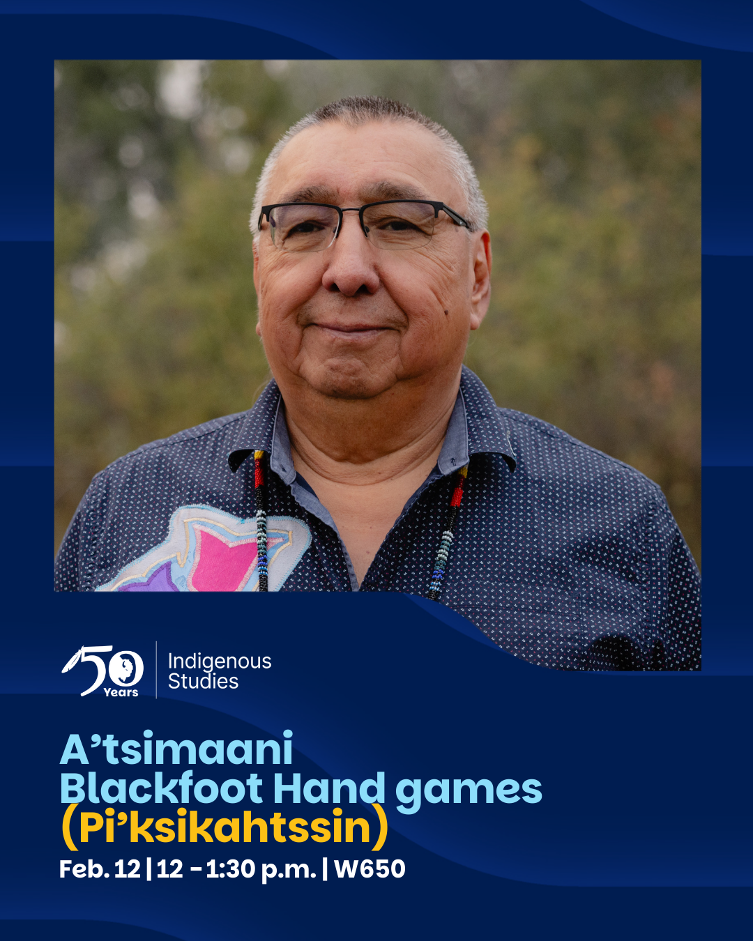 Join us for Pi'ksikahtssin with Julius Delaney. Come join us in a cultural guessing game involving two teams, drumming, singing and strategic hiding of carved bones.