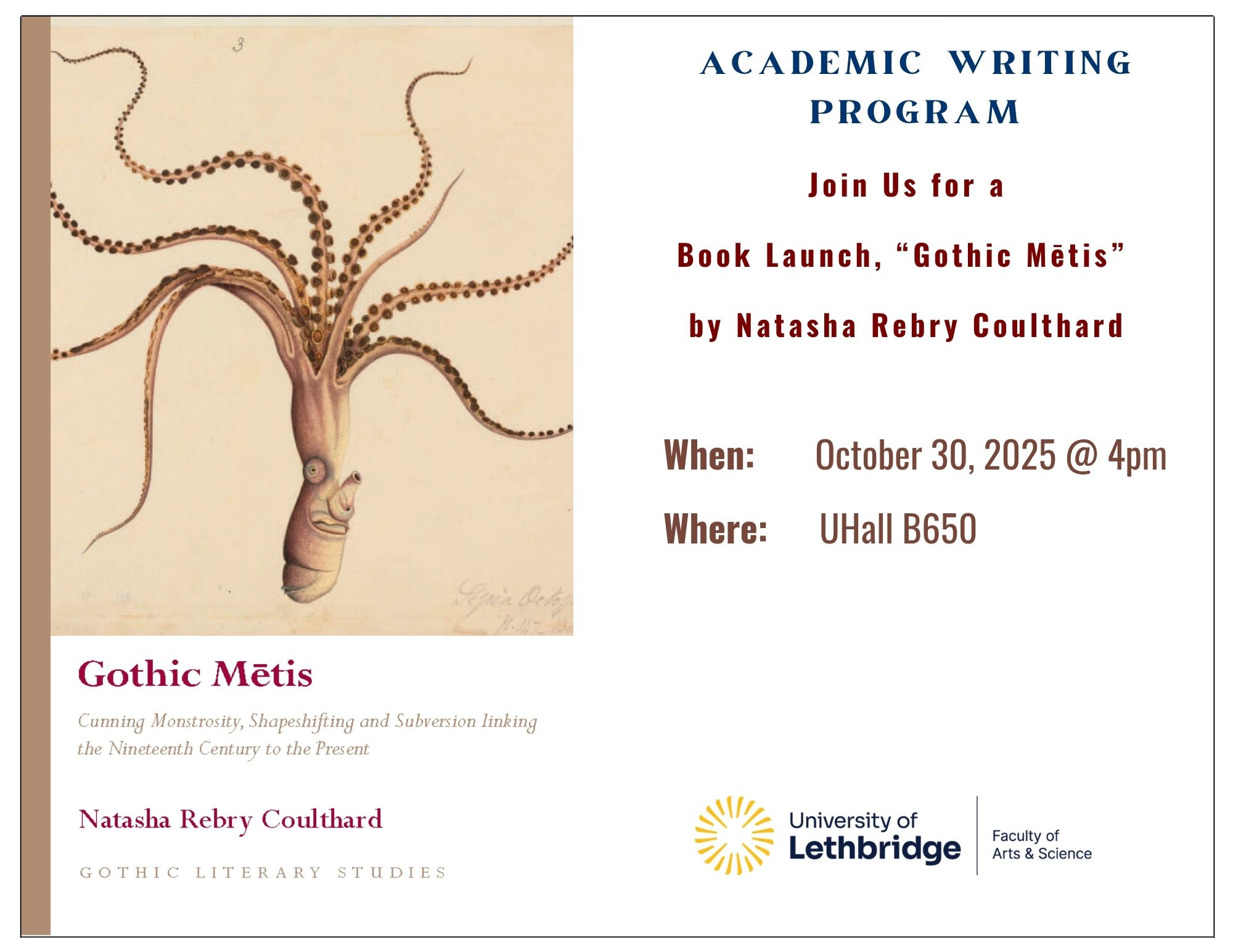 Join us in celebrating Natasha's book launch, Gothic Métis, on Thursday, Oct. 30 from 4 to 6 p.m. in UHall B650.