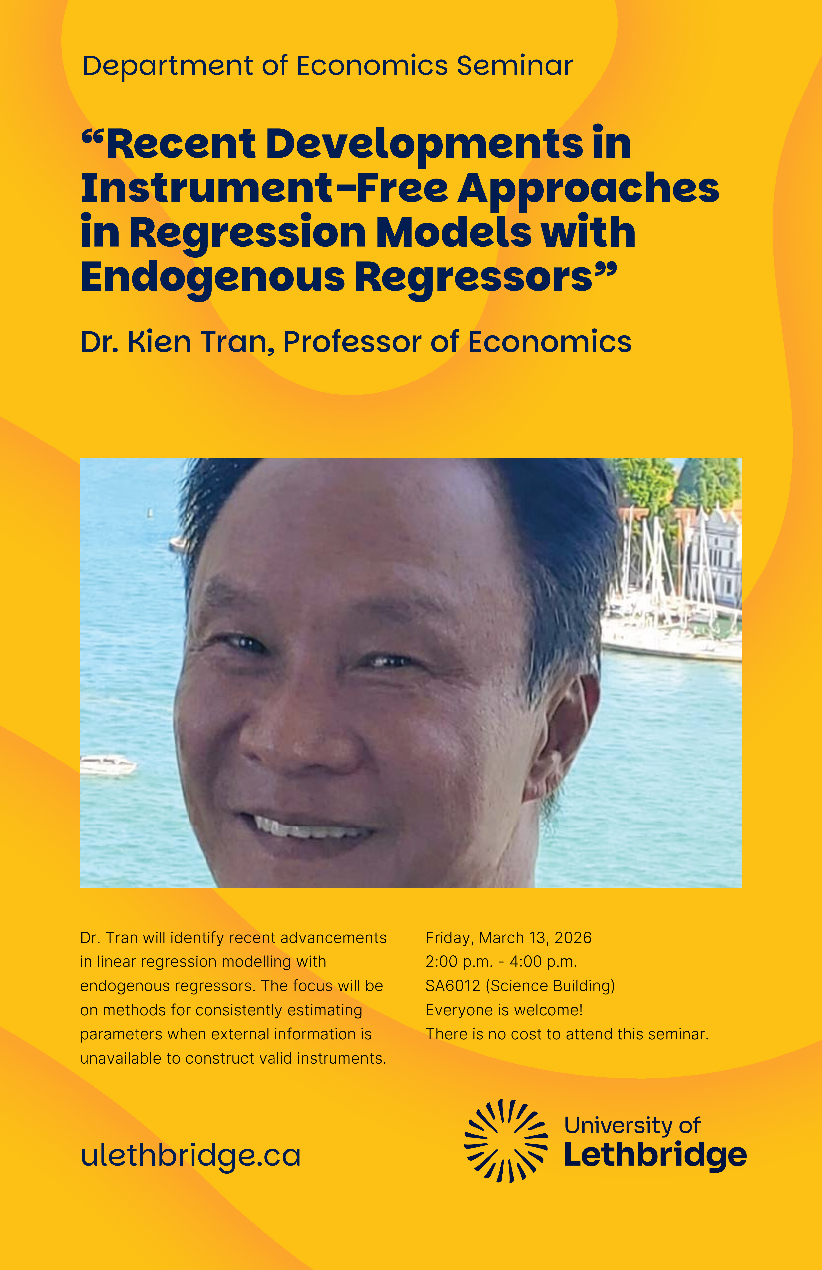Dr. Tran will identify recent advancements in linear regression modelling with endogenous regressors. The focus will be on methods for consistently estimating parameters when external information is unavailable to construct valid instruments.