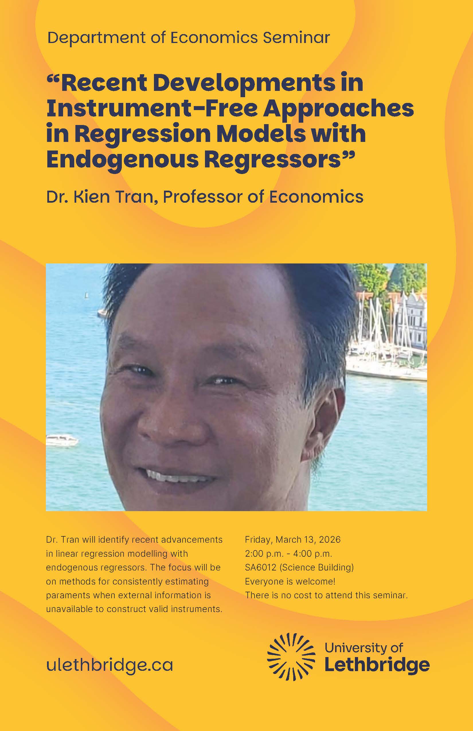 Dr. Tran will identify recent advancements in linear regression modelling with endogenous regressors. The focus will be on methods for consistently estimating parameters when external information is unavailable to construct valid instruments.