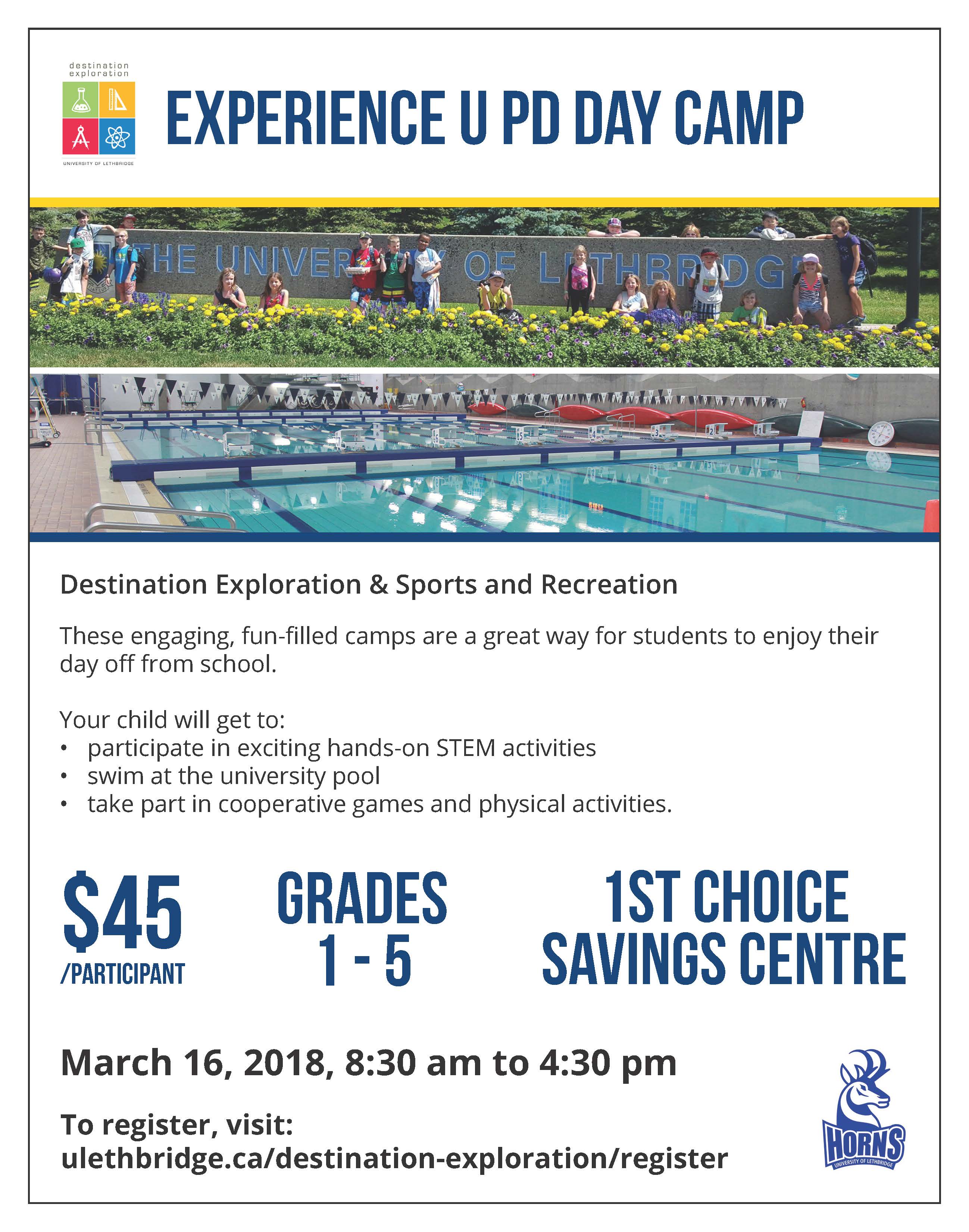 In collaboration with Sports & Recreation, Destination Exploration is once again offering a PD Day camp for students in the Lethbridge School District 51.