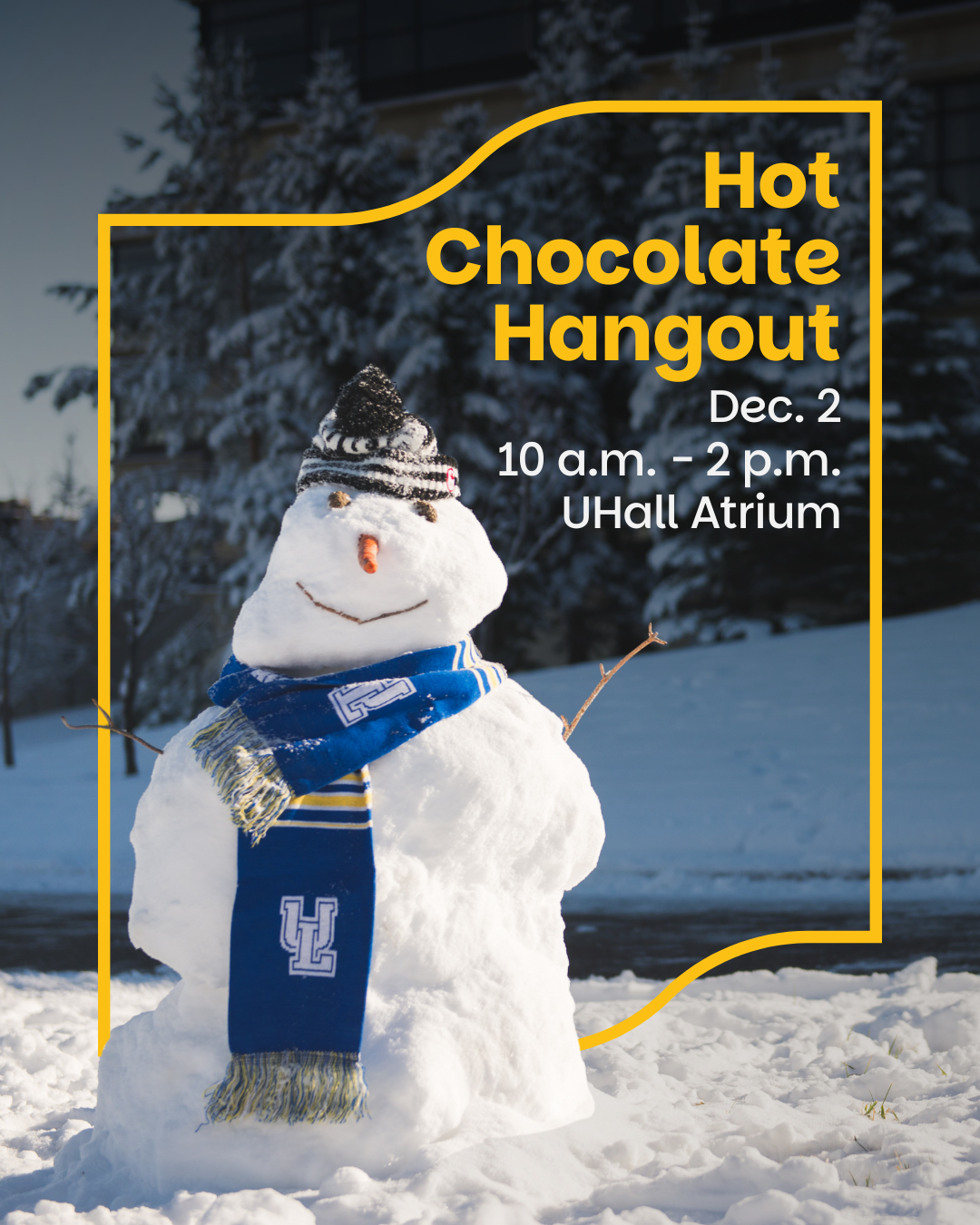 Join us for the Hot Chocolate Hangout! We’re warming things up on campus with free hot chocolate, yummy cookies and a space to chill. And yep… there’s a gift basket raffle just for showing up.