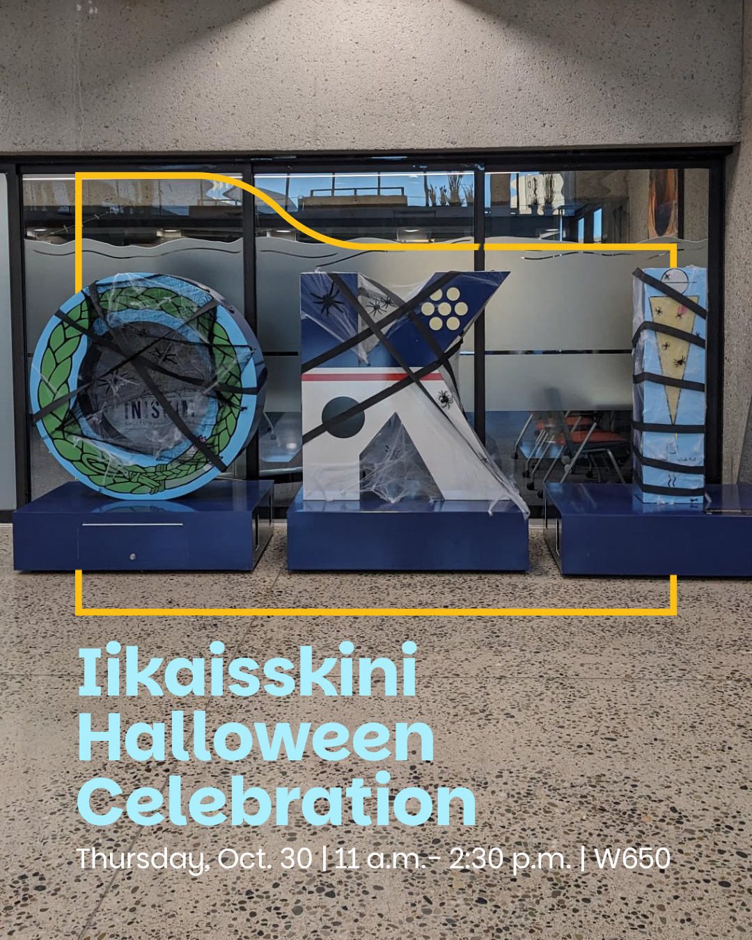Join Iikaisskini for a spooky celebration on Thursday, Oct. 30 from 11 a.m. - 2:30 p.m. in the Iikaisskini (Low Horn) Gathering Centre (W650).
