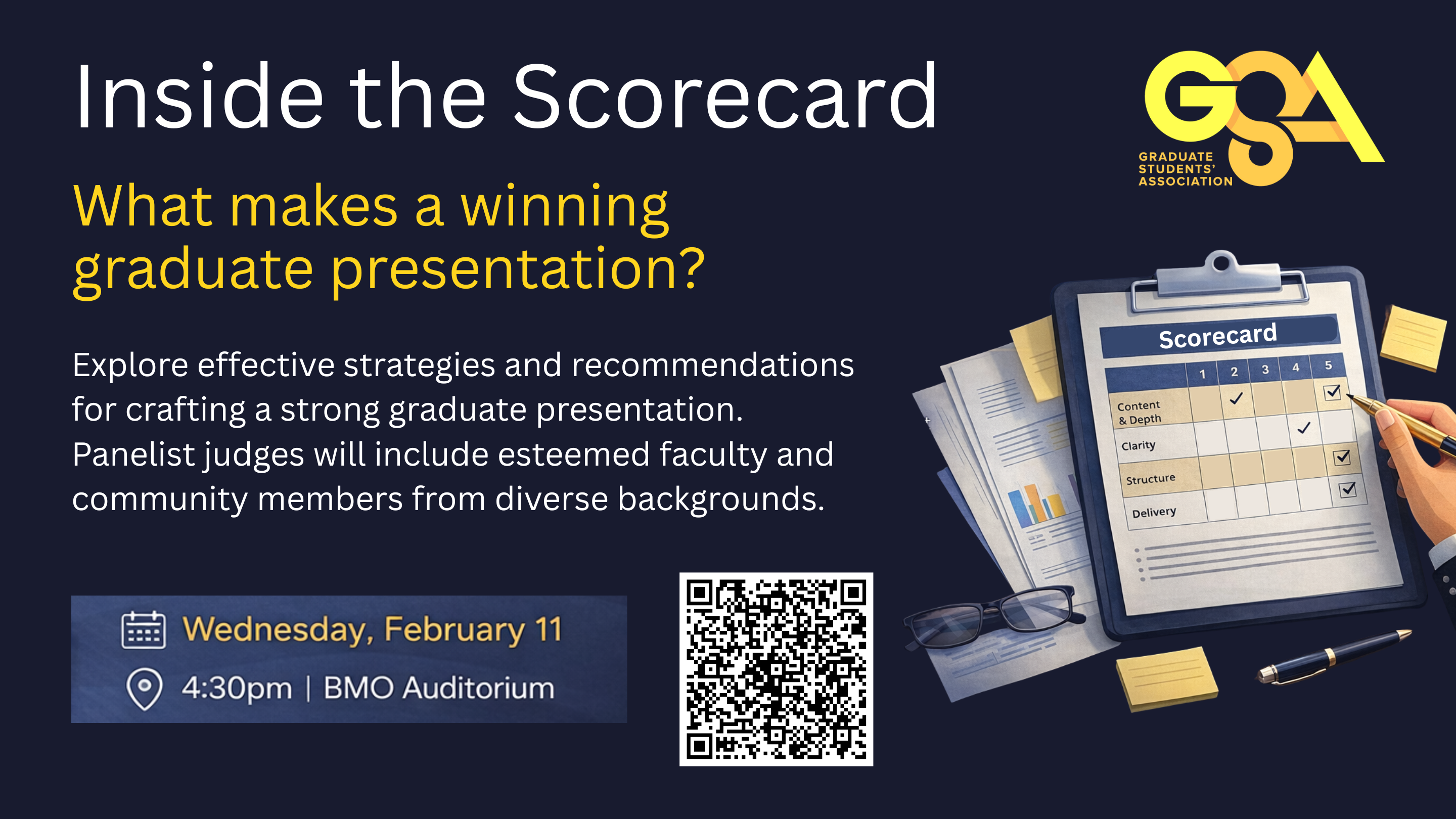 Join us on Wednesday, Feb. 11 at 4:30 p.m. in the BMO auditorium to learn more about "what the judges want" and some tools and recommendations for how to build a winning graduate presentation. Panelists include members from diverse backgrounds and experiences, and include esteemed faculty and community members, such as: Cyndi Bester-Crane - CEO, Entrepreneur, Musician, Educator: Mrs. Bester-Crane brings a wealth of speaking and performance experience Dr. Kevin Wood - Faculty of Education, drama & leadership education: Dr. Wood brings his background in performance, academia & education Brad Tucker - ULethbridge alum, with a background in science dissemination, government and education: Mr. Tucker brings his passion for communication, judging and supporting graduate students Kimiko Epp - Experienced Toastmaster with a background in science and public speaking: Mrs. Epp brings years of experience in speechcraft tied with her background in science Dr. Marta Gerasymchuk - Office of Research & Innovation Services with a background in medicine, Biomolecular Sciences, commercialization & academia-industry partnerships.