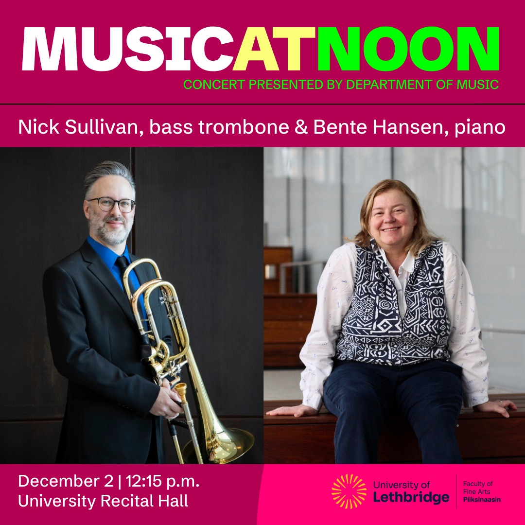 Nick and Bente have performed (and worked!) together for years, going all the way back to when Nick was a student in Bente's first years of teaching on campus! Bente has performed with Nick's low brass students over all that time, so they decided to finally perform some of the music that their students have learned year after year! (Plus, a chance for them to tell a few short stories about some of the music through which students develop their craft!)
