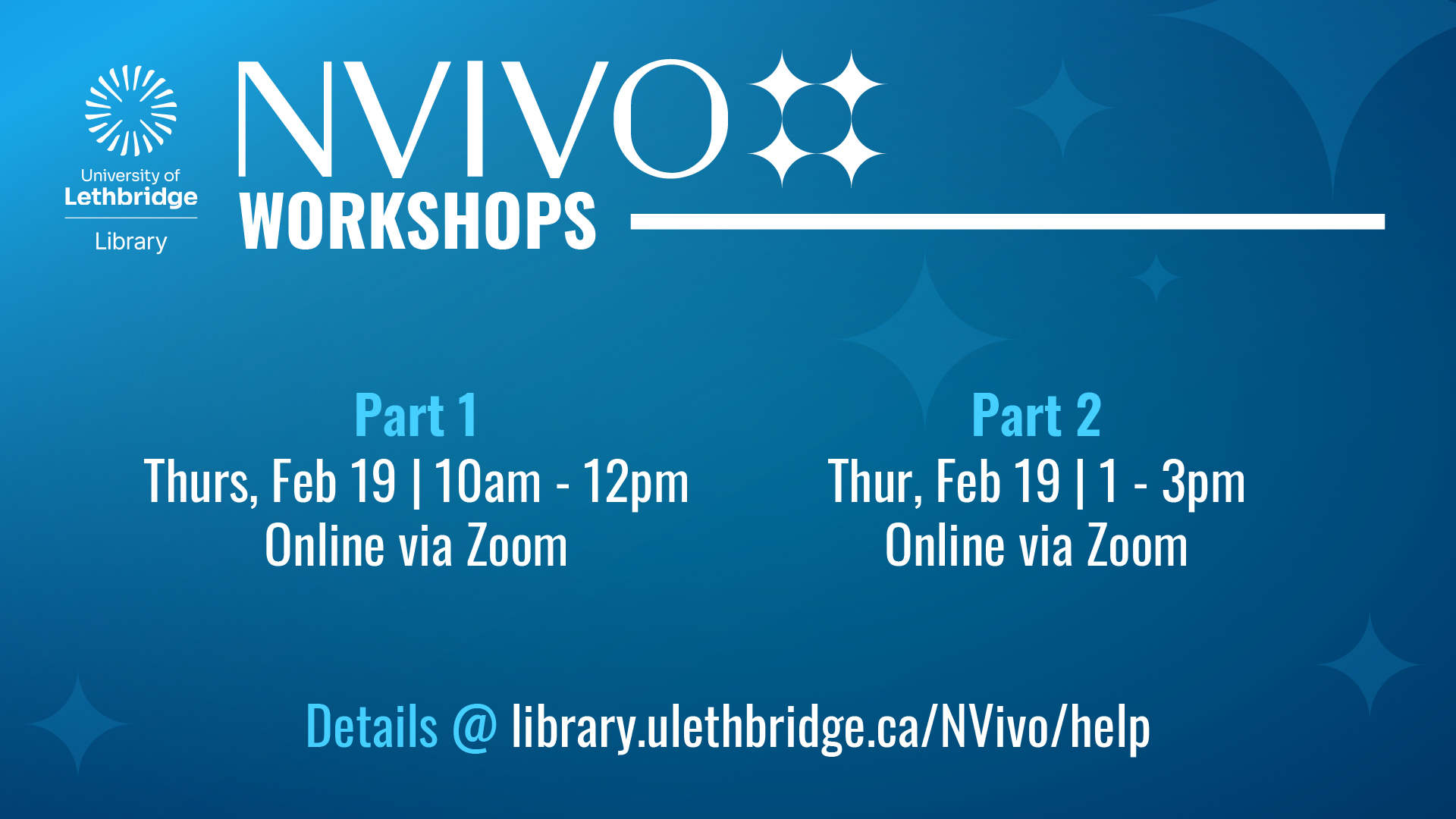 • NVivo Part 2 (Windows); Thursday, Feb. 19; 1 – 3 p.m. [REGISTER NOW]