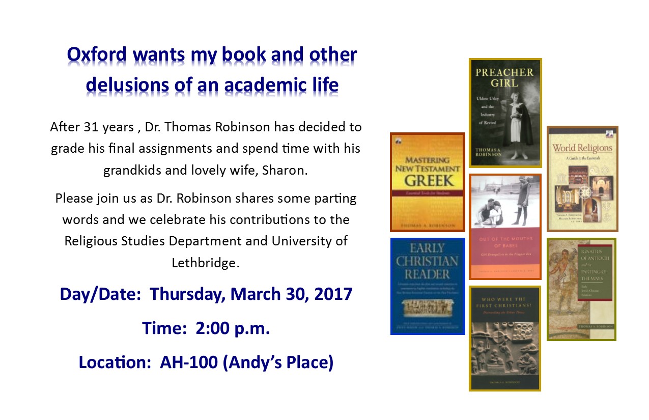 Please join us as Dr. Robinson shares some parting words and we celebrate his contributions to the Religious Studies Department and University of Lethbridge.