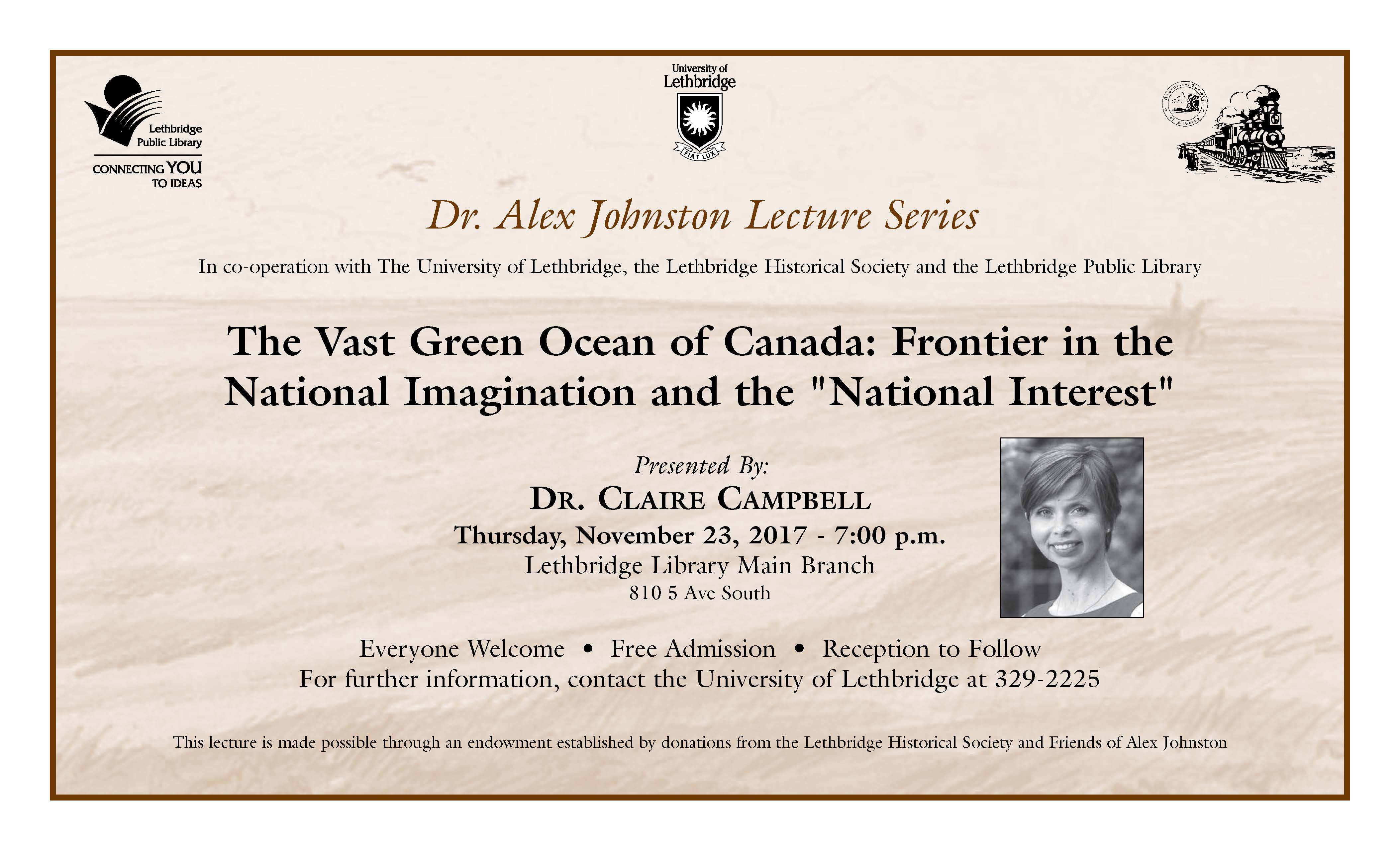 This lecture is made possible through an endowment established by donations from the Lethbridge Historical Society and Friends of Alex Johnston