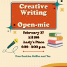 Join us on Friday, Feb. 27 at 6p.m. for a Creative Writing Open Mic in Andy's Place (AH100)
