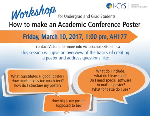 Join us for a workshop on how to mak a poster on Friday, March 10, 1pm, AH177. Everyone is welcome, no registration necessary.