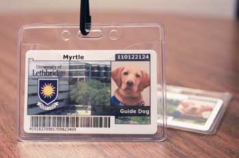 Hamilton, originally from Calgary, does not need Myrtle, rather she is part of the Alberta Guide Dog Services training program, working with Myrtle for the next 10 months before she is sent off to Vancouver for a final five-month training period.